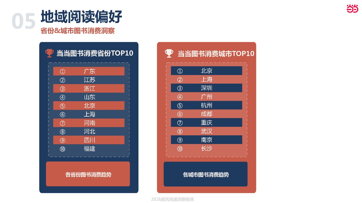 报告同步发布2026年十大阅读省份与城市。地域阅读热情与经济发展水平、人口规模呈现较强关联性,同时凸显出鲜明的地域阅读偏好: