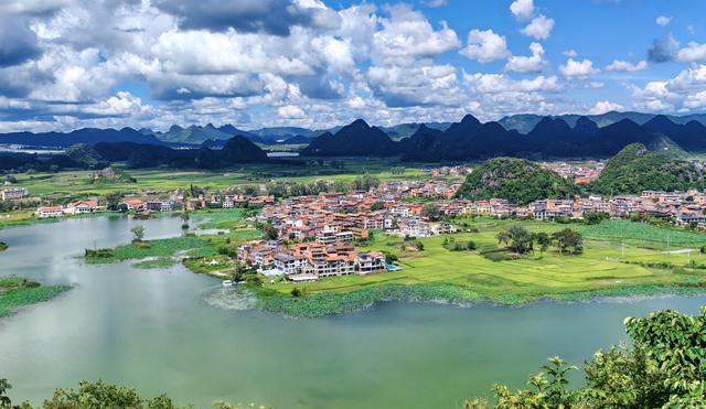 在云南文山普者黑配资门户资讯,水天一色间,青峰静静倒映碧波。